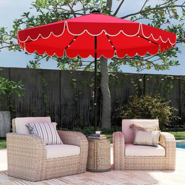 10 ft. Solar Market Patio Umbrella with 24 LED Lights 8 Ribs and Tilt Adjustment in Red