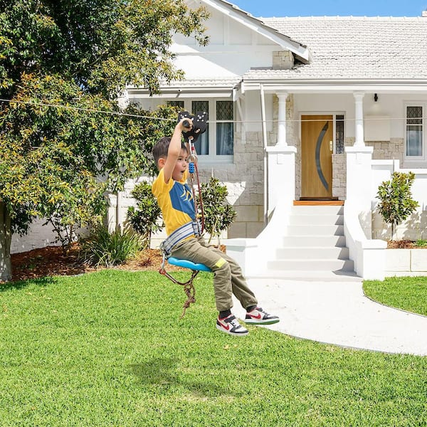 100 ft. Zipline Kit for Backyard Kids Adults w/Stainless Steel Spring Brake Seat
