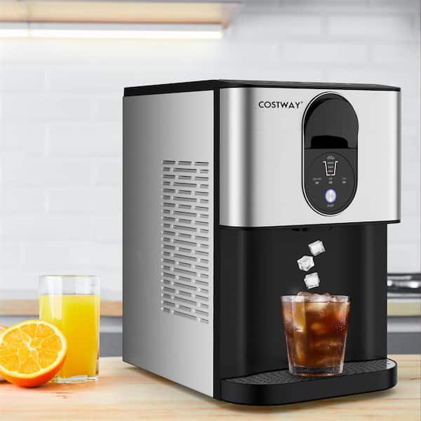 11 in. 56 lbs./24 H Nugget Ice Countertop Portable Ice Maker in Silver with Self-Cleaning System