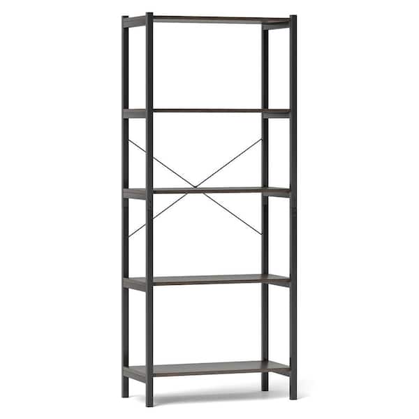 14 in. Wide 63 in. H Grey 5-Tier Rustic Industrial Bookshelf Wood Display Storage Rack with Metal Frame