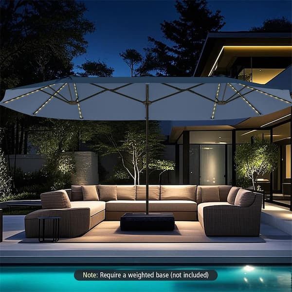 15.5 ft. Metal Market Solar Extra-Large Patio Umbrella with LED Solar Lights and 12 Heavy-Duty Ribs in Navy