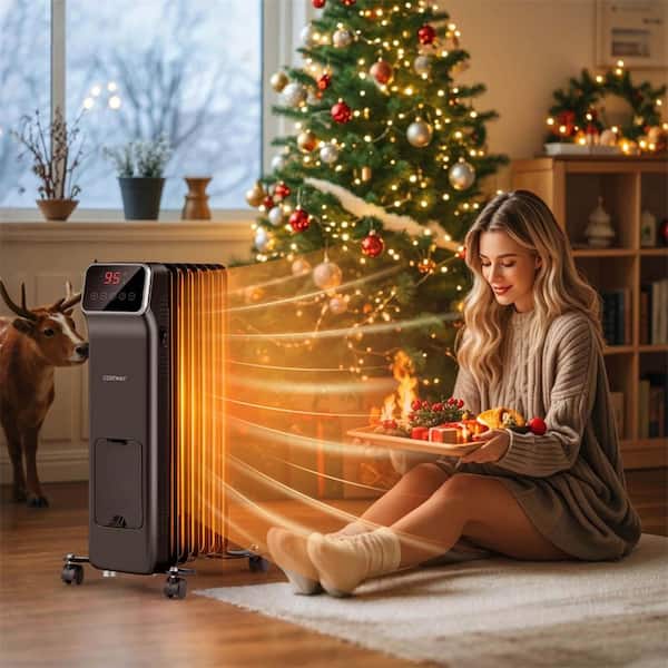 1500-Watt Black Indoor Electric Oil Filled Radiator Radiant Space Heater with Remote Control 3-Modes 24-H Timer