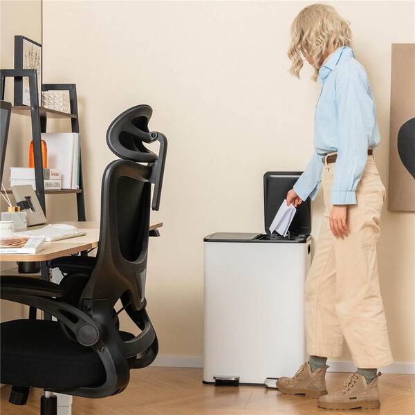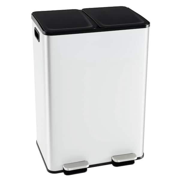 16 gal. Metal Household Trash Can Step Lid in White