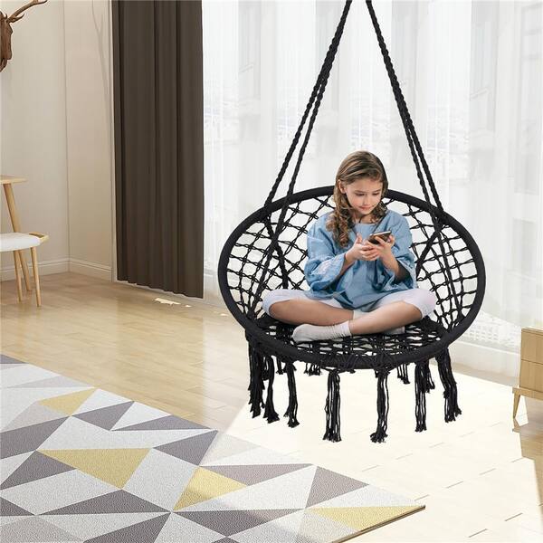 2.7 ft. Portable Hanging Hammock Chair Hammock without Stand in Black