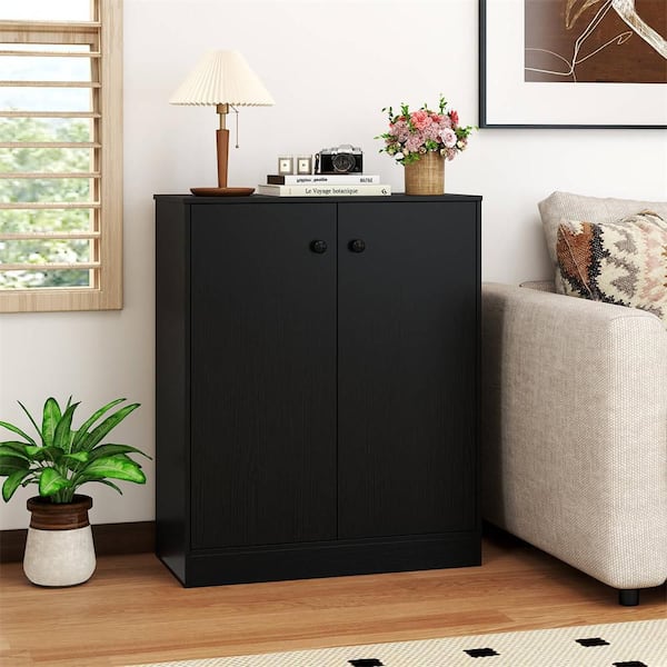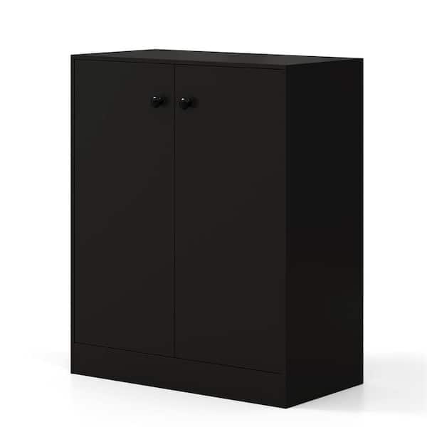 2-Door Black 33.5 in. H Storage Cabinet Freestanding Storage Organizer with 3-Tier Shelf Entryway