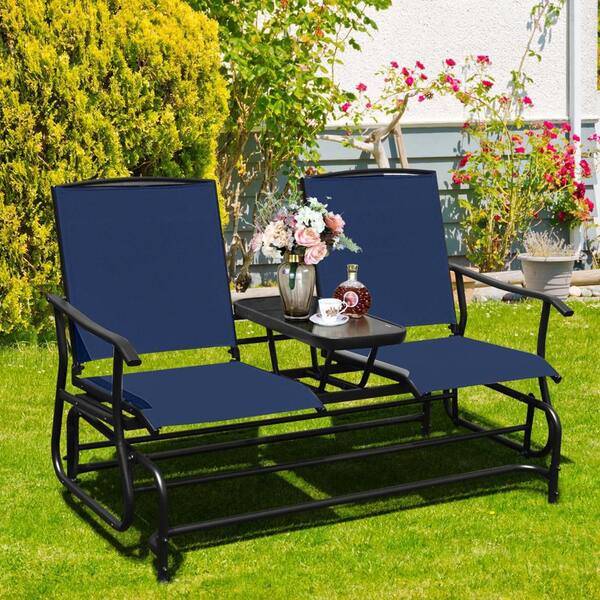 2-Person Navy Metal Outdoor Glider Chair Patio Double Loveseat Rocking