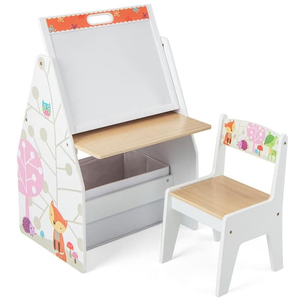 2-Piece Kids Table & Chair Set with Rotatable Double-sided Magnetic Blackboard & Whiteboard White