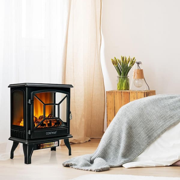 20 in. 1400-Watt Freestanding Electric Fireplace Heater Stove W/Realistic Flame Effect in Black