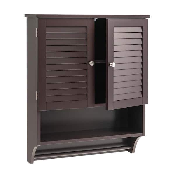 23 in. W x 9 in. D x 30 in. H Bathroom Storage Wall Cabinet in Espresso with Louvered Doors and Towel Bar