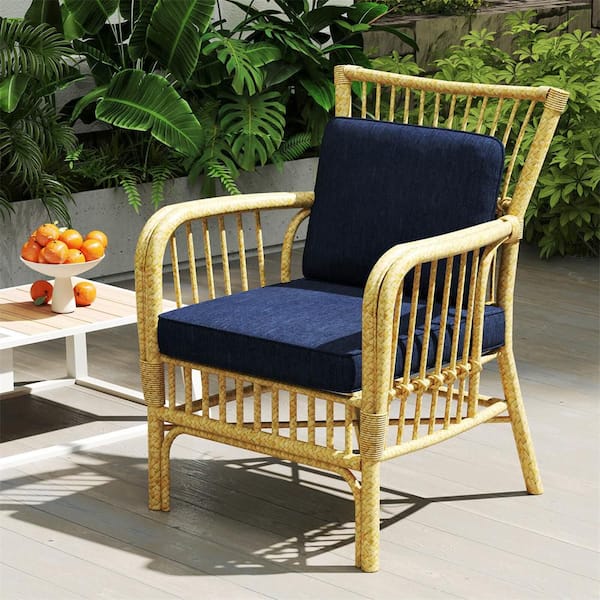 23 in. x 18 in. Outdoor Dining Chair Deep Seat Cushion and Back Pillow with Removable Covers Navy (2-Pack)