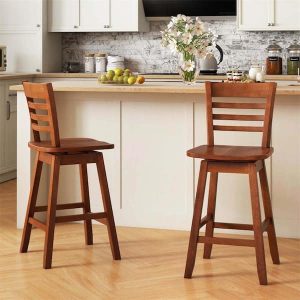 24.5 in. Brown Wood Swivel Bar Stools with Hollow Backrest (Set of 2)