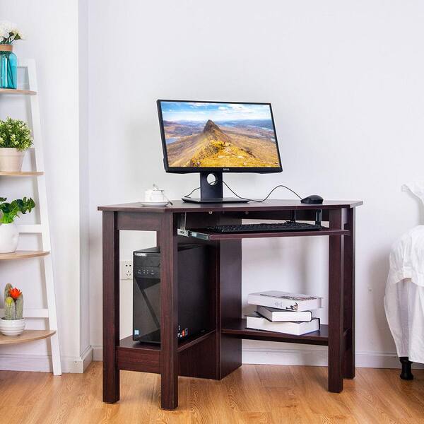 24 in. Corner Brown Particle and Hollow Slab 1-Drawer Computer Desk with-Drawer