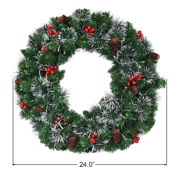 24 in. Green Pre-Lit LED Artificial Christmas Wreath with Pinecones and Red Berries