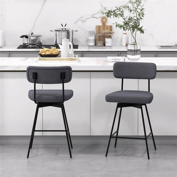 25 in. Gray Low Back Metal Swivel Bar Stools Counter Height Upholstered Kitchen Dining Chair Set of 4