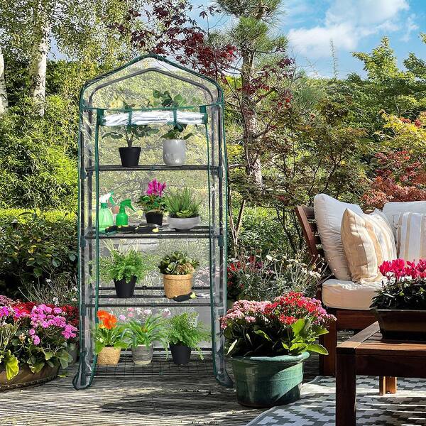 28 in. W x 19 in. D x 63 in. H Mini Greenhouse with PVC Cover 4-Tier Portable Warm House