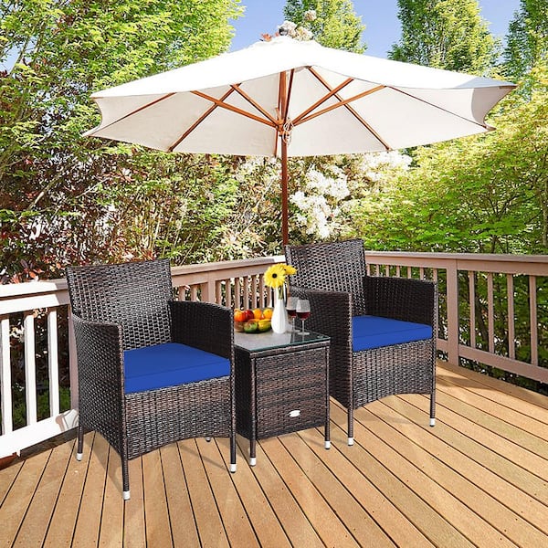 3-Piece Wicker Patio Conversation Sectional Seating Set with Cushion Navy