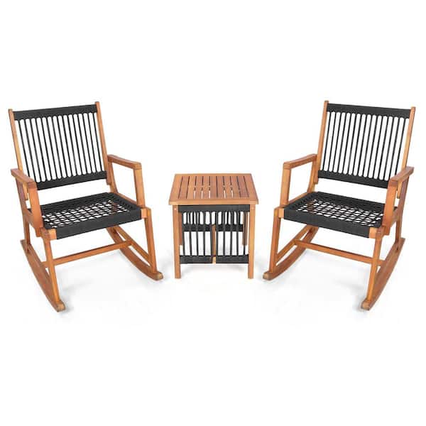 3-Pieces Acacia Wood Outdoor Bistro Set with Table Rocking Chair Set All-Weather Rope