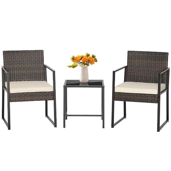 3-Pieces Patio Furniture Set Heavy-Duty Cushioned Wicker Rattan Chairs Table Outdoor in White