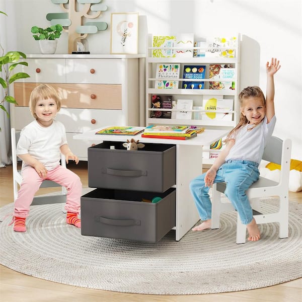 3-Pieces Rectangular Wood Top Grey Kids Bar Table Set