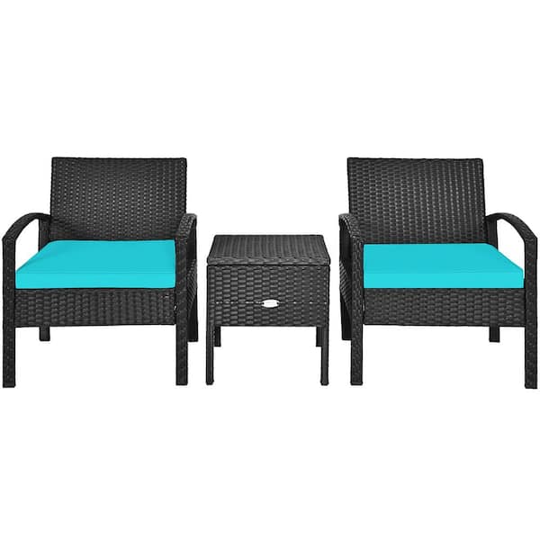 3-Pieces Wicker Outdoor Sectional Set with Turquoise Cushion
