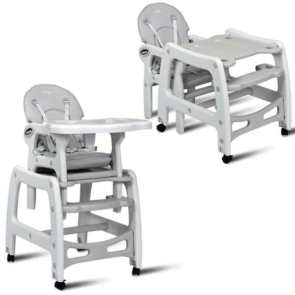 3 in 1 Grey Plastic Baby High Chair w/AdjusTable Seat Back and Removable Trays