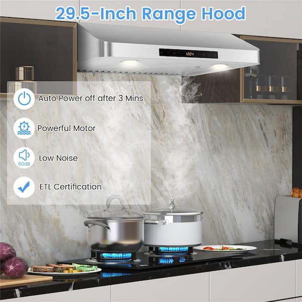 30 in. Top/Rear Under Cabinet Range Hood in Silver with 4 Fan Speed Adjustable LED Lights Time Setting