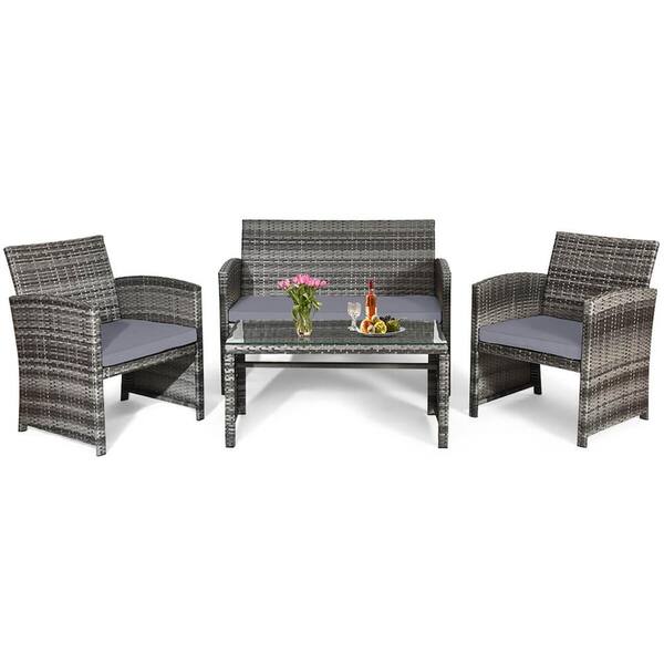 4-Piece Plastic Patio Conversation Set with Mix grey Cushions
