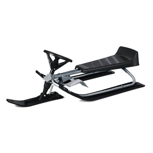 44 in. Kids Snow Racer Sled with Steering Wheel Double Brakes Pull Rope Iron Frame