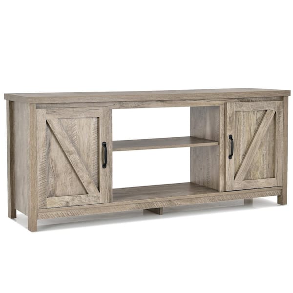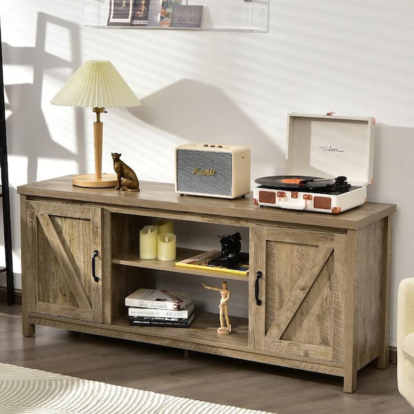 59 in. Natural TV Stand Fits TV up to 65 in. with Adjustable Shelves