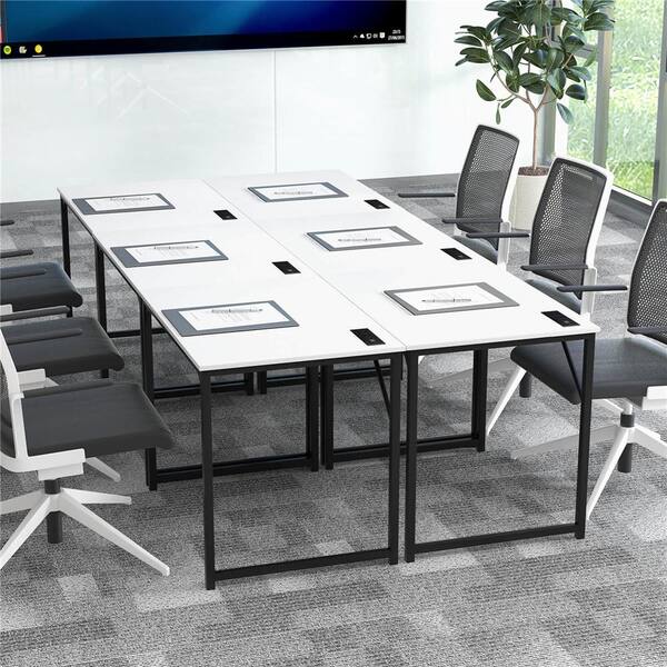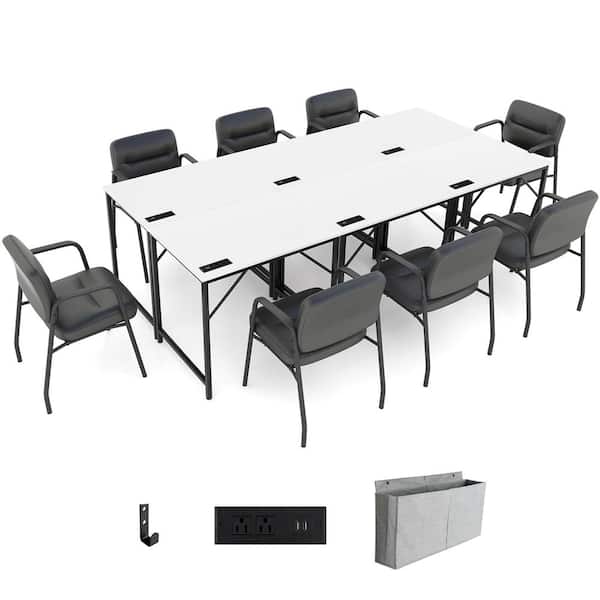 6-Pieces 32 in. Rectangular White Wood Desk with Charging Station Storage Bag and Headphone Hook