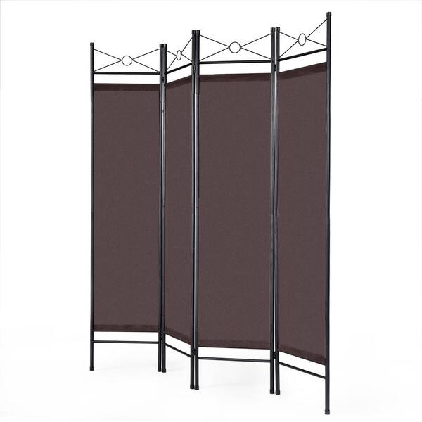 71 in. Brown 4-Panel Room Divider Privacy Screen with Metal Frame