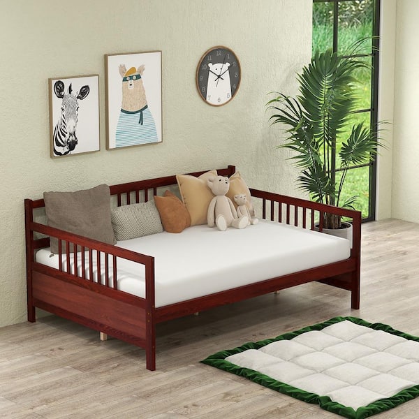 79.5 in. Cherry Full Size Daybed Frame Solid Wood Sofa Bed for Living Room Bedroom