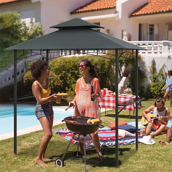 8 ft. x 5 ft. Gray Grill Gazebo with 2 Shelves 7 Hooks Metal Frame Soft Top