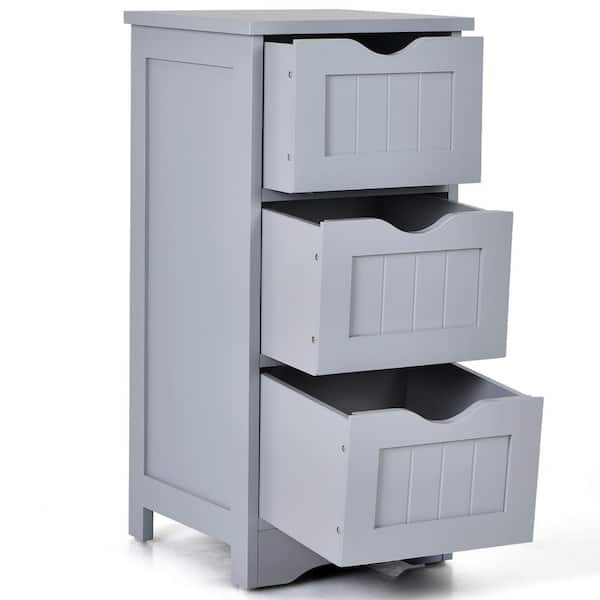 Bathroom Floor Cabinet 12in. W x 12in. D x 25''in. H Wood Freestanding Linen Cabinet w/3 Drawers in Gray