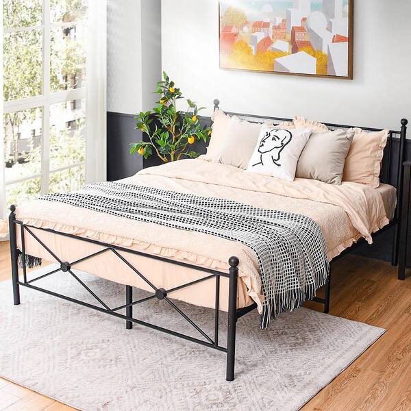 Black Full Size Bed Frame with Headboard Footboard No Box Spring Needed
