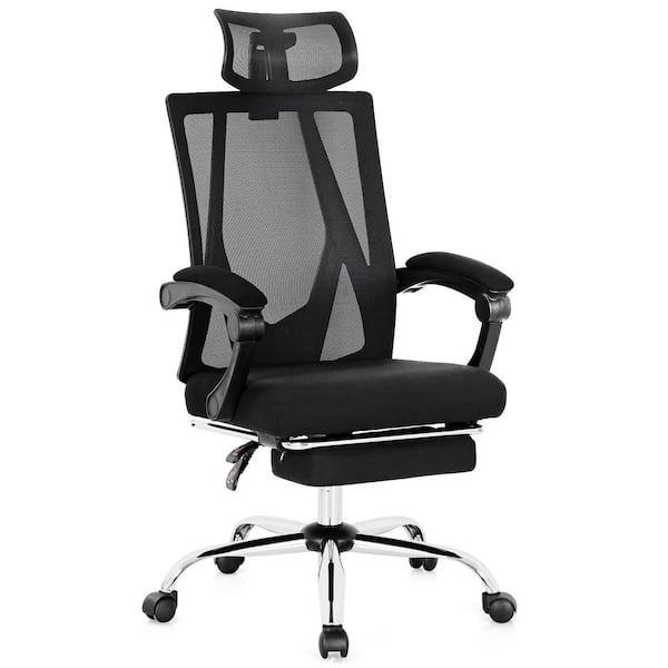 Black Mesh Office Chair Recliner Desk Chair Height Adjustable with Footrest