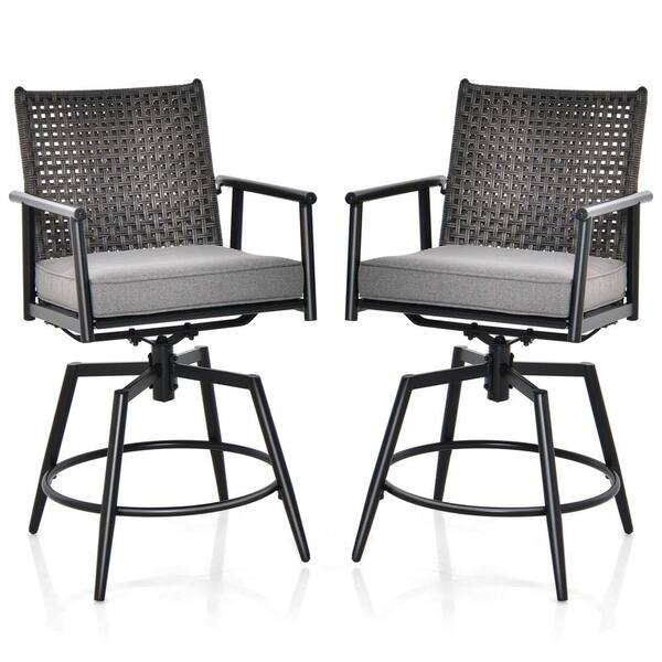 Black Metal Outdoor Dining Chair with Gray Cushion 2-Pack