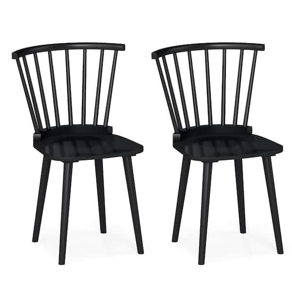 Black Rubber Wood Windsor Dining Chairs with Spindle Back for Living Room Set of 2