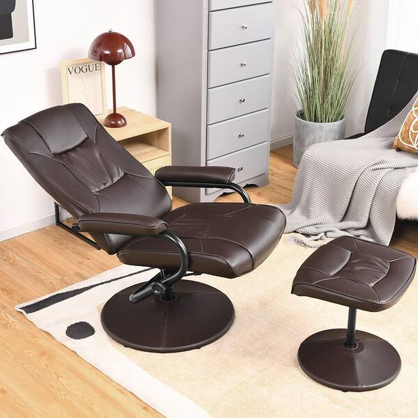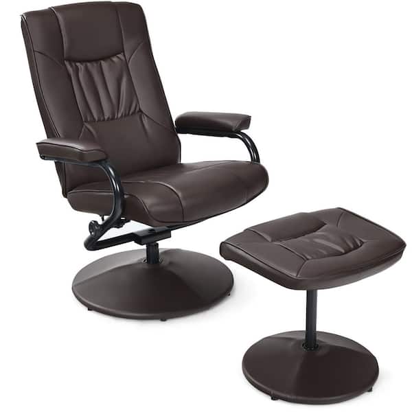 Brown PVC Leather 360° Swivel Recliner Chair Lounge Accent Armchair w/Ottoman
