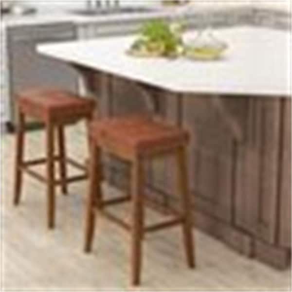 Brown Rubber Wood 29 in. Bar Height Stools with PU Leather Seat Solid Frame (Set of 2)