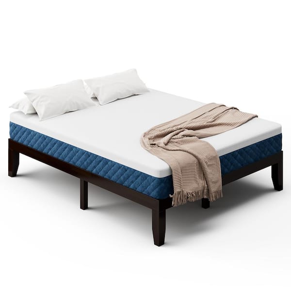 Brown Wood Bed Frame Queen Platform Bed with 10 in. Foam Mattress Set CertiPUR-US Certified