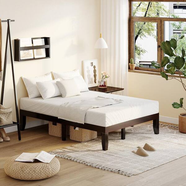 Brown Wood Frame Full Size Platform Bed with Memory 8 in. Foam Mattress Set CertiPUR-US Certified
