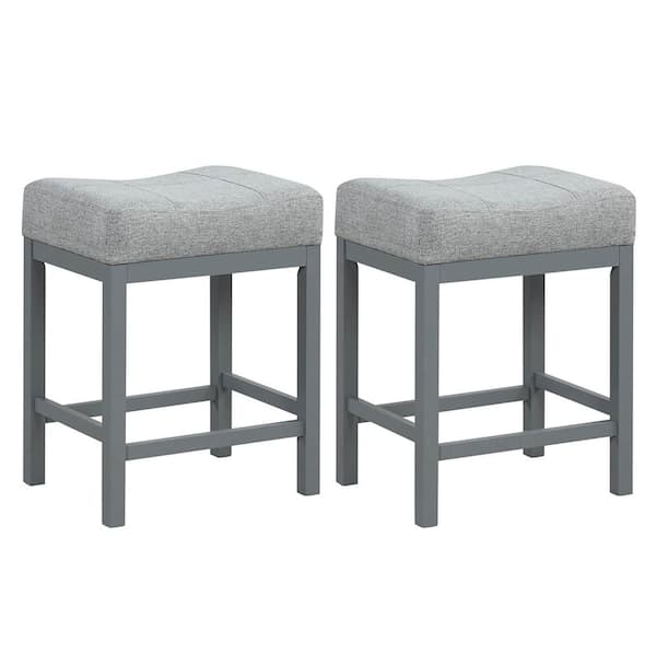 Farmhouse 24.5 in. Gray Backless Rubber Wood Bar Stool with Linen Fabric Seat (Set of 2)