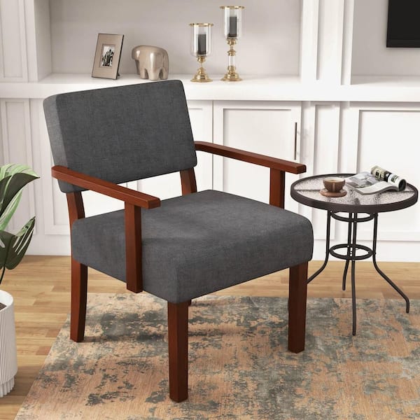 Gray Mid-Century Linen Accent Chair Living Room Chair with Soft Padded Seat & Backrest(1 PCS)