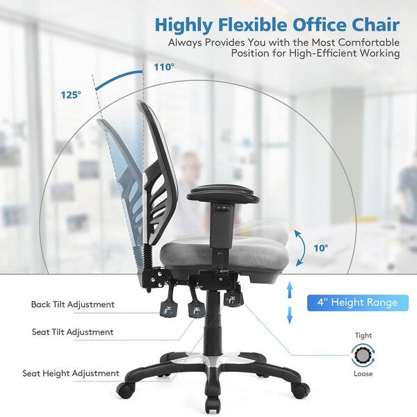 Grey Mesh Office Chair 3-Paddle Computer Desk Chair with Adjustable Seat