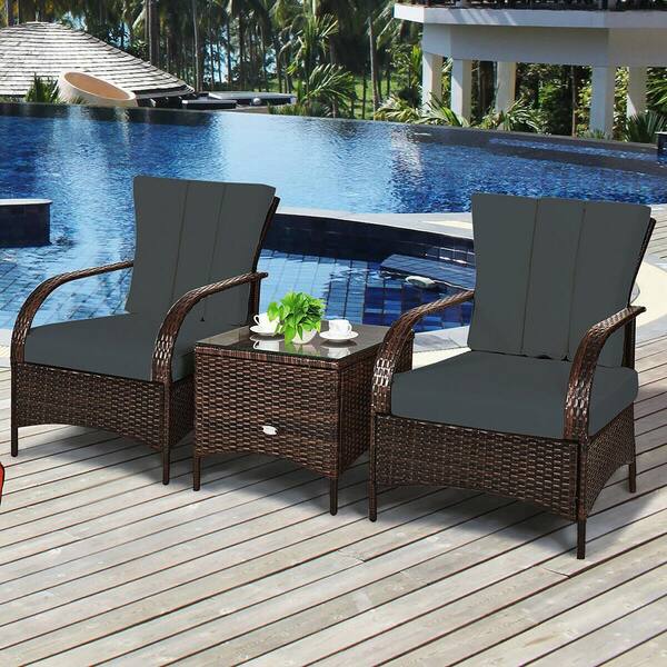 Island 3-Piece Wicker Patio Conversation Set with Gray Cushions