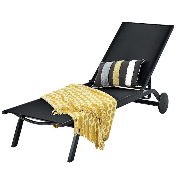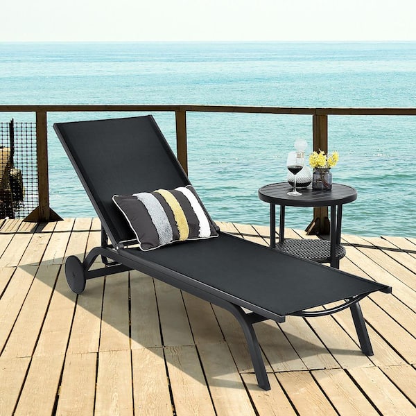 Reclining Aluminum Outdoor Lounge Chair in Black