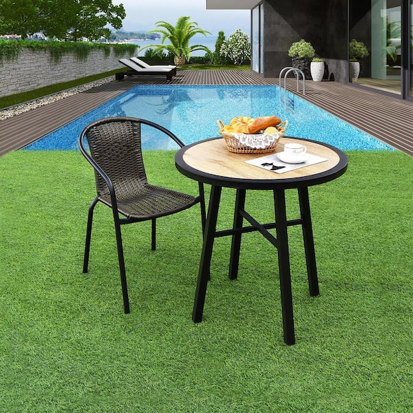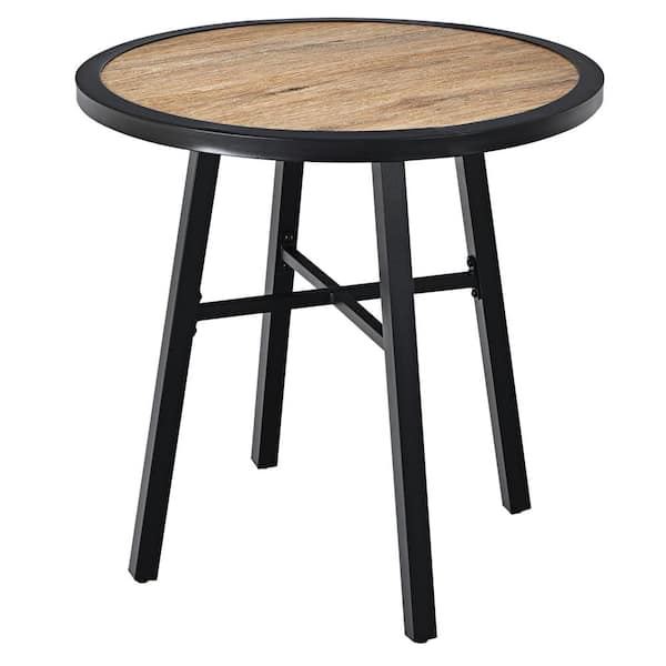 Round Metal 29 in. Patio Outdoor Bistro Table Wood-Like Top Garden Deck Backyard