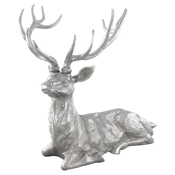 Silver Sitting Reindeer Statue Christmas Decor Statue Aluminum 17.5 in. x 15 in. x 17.5 in.