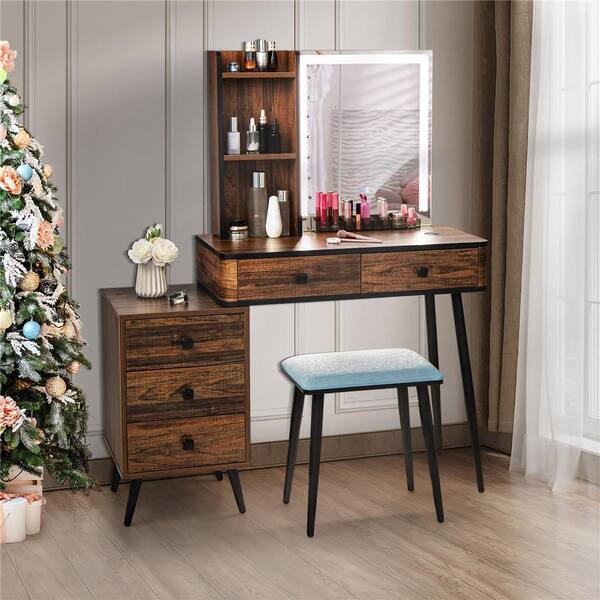 Vanity Makeup Table Set 3-Color Dimmable Human Body Induction LED Light Brown